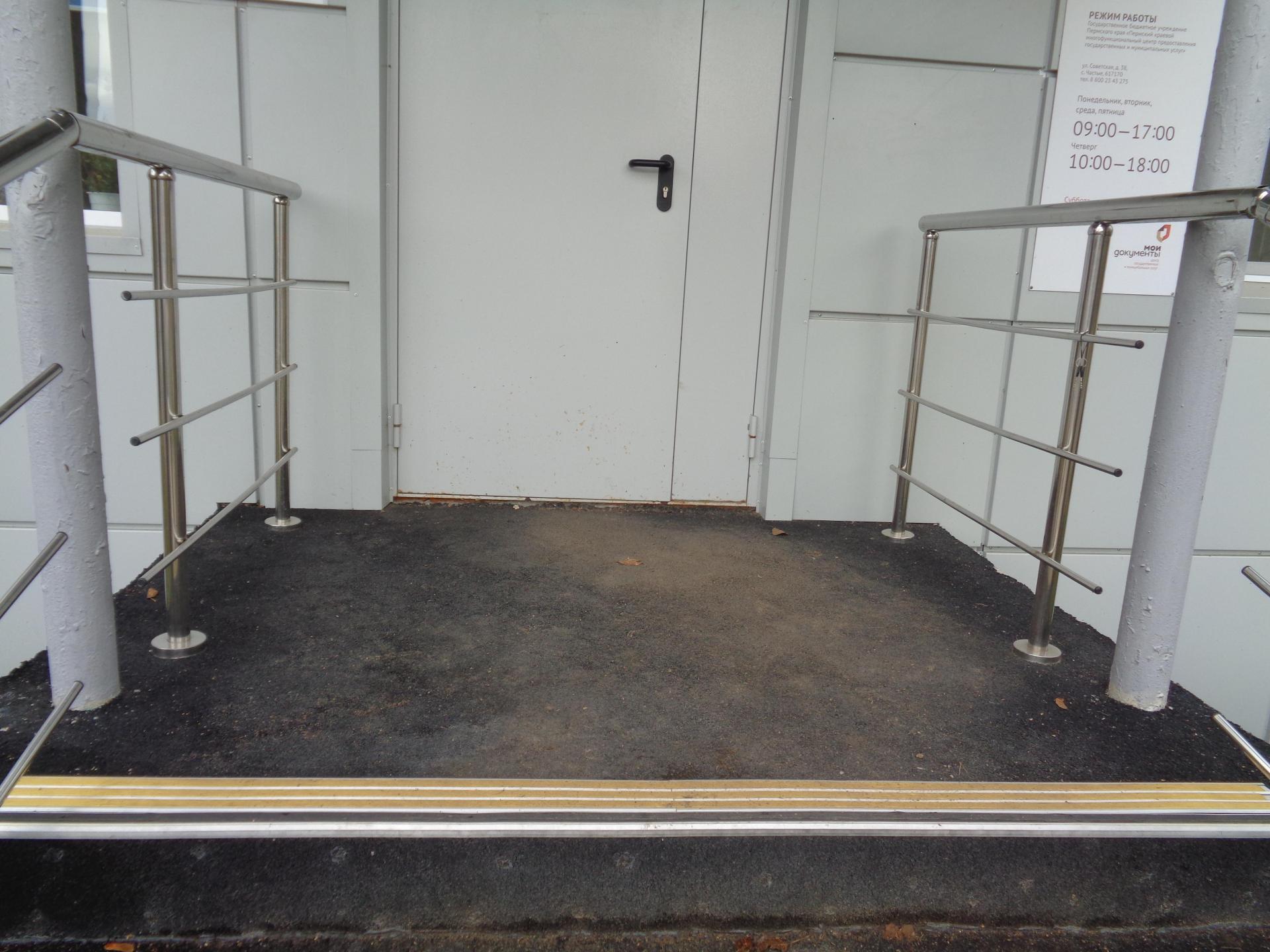 | Частично доступен | - нормативные требования выполнены по входной группе и приближенной к ней зоне оказания услуг с обеспечением на ней всех видов услуг, имеющихся в данном здании, либо обеспечена доступность любого места обслуживания на объекте, но имеются отклонения от нормативов, не нарушающие требований безопасности и досягаемости | |