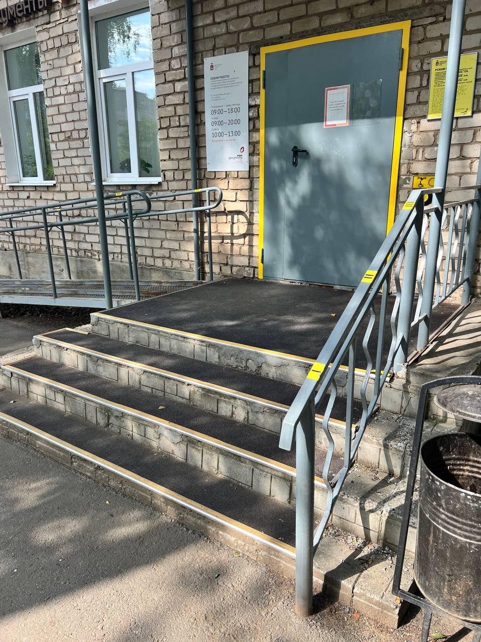 | Вход (входы) в здание | Временно недоступен | Частично доступен | Временно недоступен | Полностью доступен | Полностью доступен |