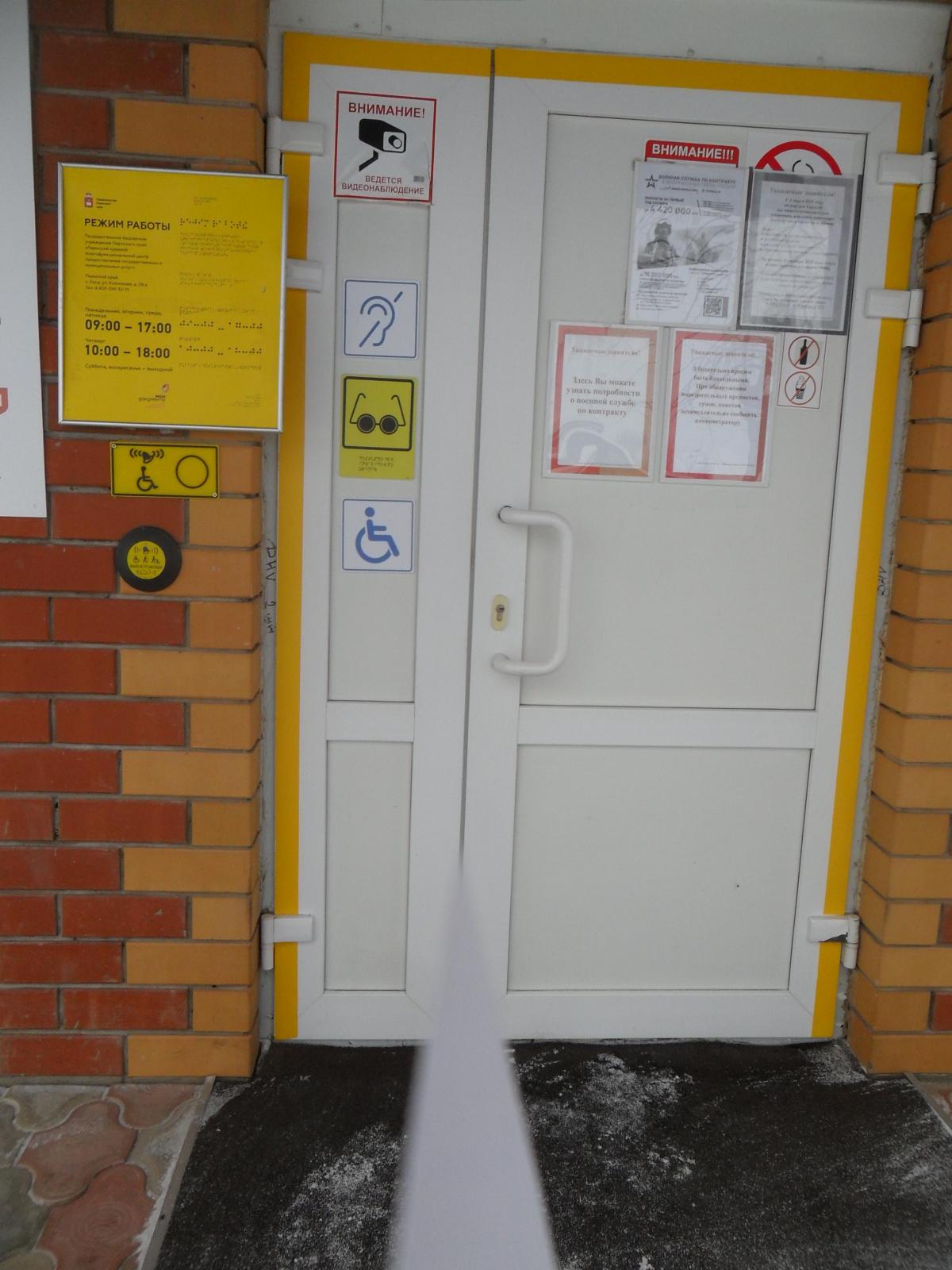 | Частично доступен | - нормативные требования выполнены по входной группе и приближенной к ней зоне оказания услуг с обеспечением на ней всех видов услуг, имеющихся в данном здании, либо обеспечена доступность любого места обслуживания на объекте, но имеются отклонения от нормативов, не нарушающие требований безопасности и досягаемости | |